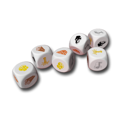 On your turn, you may roll 6 special dice up to three times. After each dice roll, you may either set aside part of the dice or roll all dice again.