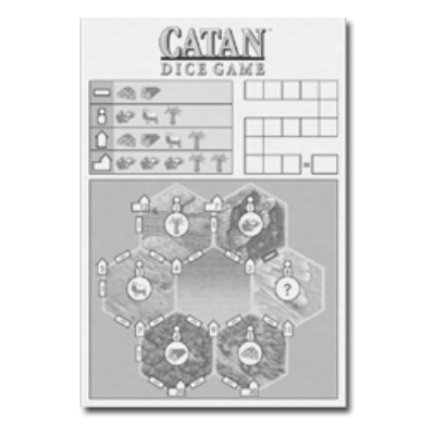 Here, however, building doesn't mean placing wooden or plastic game pieces on a game board. Instead, each player has a sheet depicting a smaller version of the island of Catan. You build by filling in the respective symbols for roads, knights, settlements, and cities.